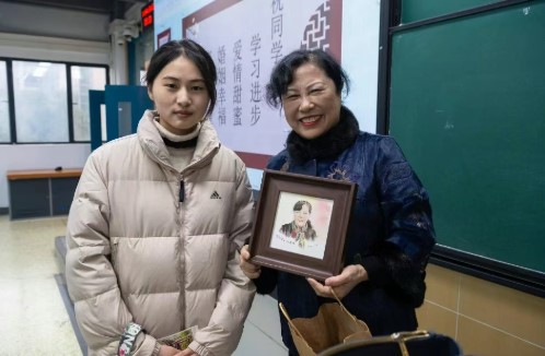 美术学院的同学赠上一幅精心创作的肖像画 寓意吴教授为无数学子打开人生之窗