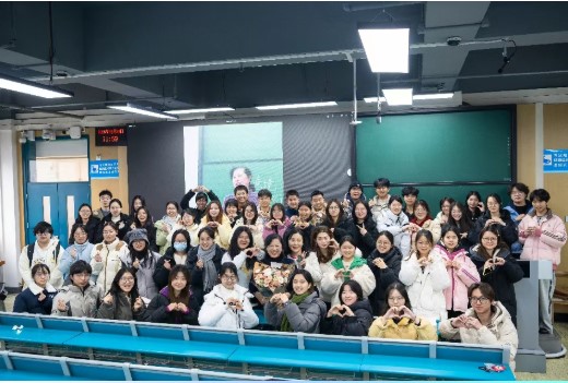 第一堂课结束时 文学院副院长陈蓓和教师代表张筱南 对吴满珍教授五十年执教所做的贡献 给与高度赞扬 寄语学子薪火相传 陈秀玲、黄凯、江雪老师也送上鲜花与祝福