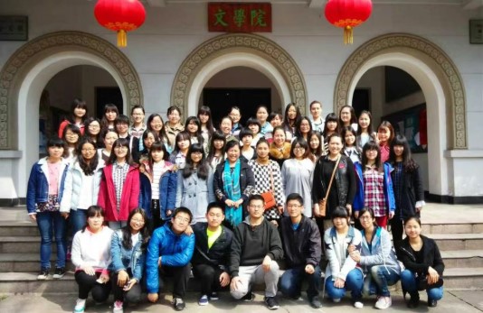 (吴满珍教授与喀什大学汉语言文学专业学生合影)