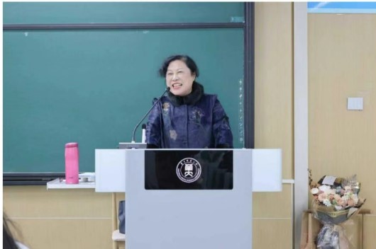 第一堂课结束时 文学院副院长陈蓓和教师代表张筱南 对吴满珍教授五十年执教所做的贡献 给与高度赞扬 寄语学子薪火相传 陈秀玲、黄凯、江雪老师也送上鲜花与祝福