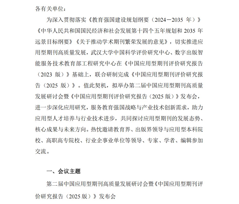 第二届中国应用型期刊高质量发展研讨会暨《中国应用型期刊评 价研究报告(2025 版)》发布会